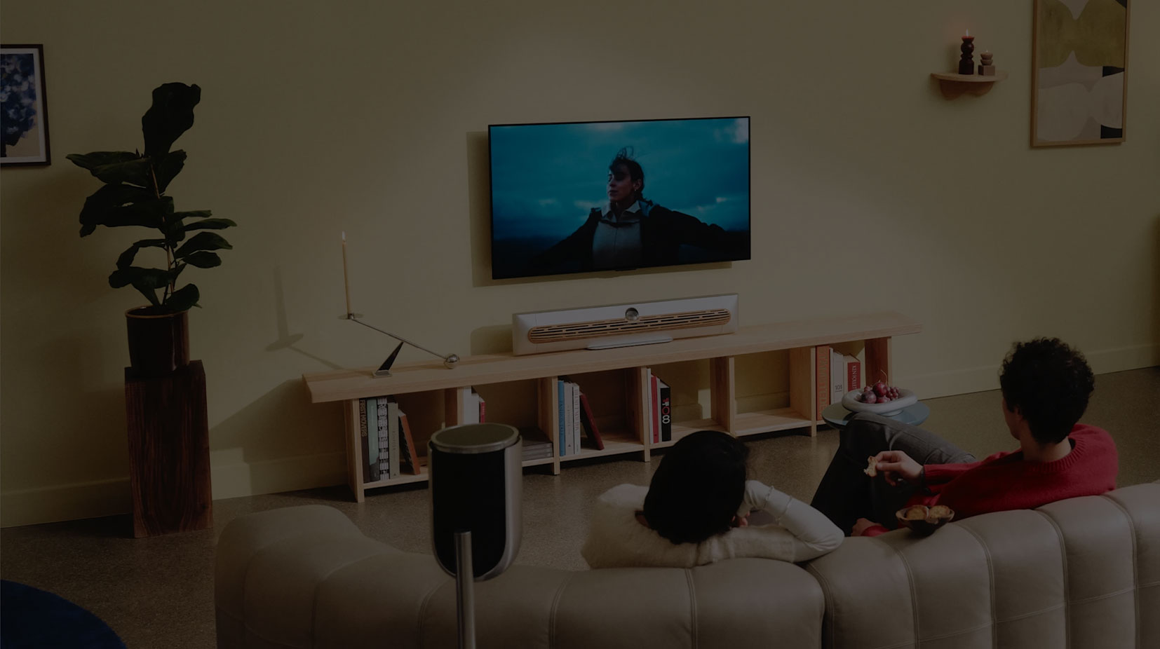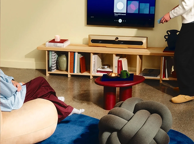 Pritisnite plej za bioskopski zvuk. Sa Beosound Premiere u svom centru, ovaj sistem okružujućeg zvuka dokazuje da je manje više.